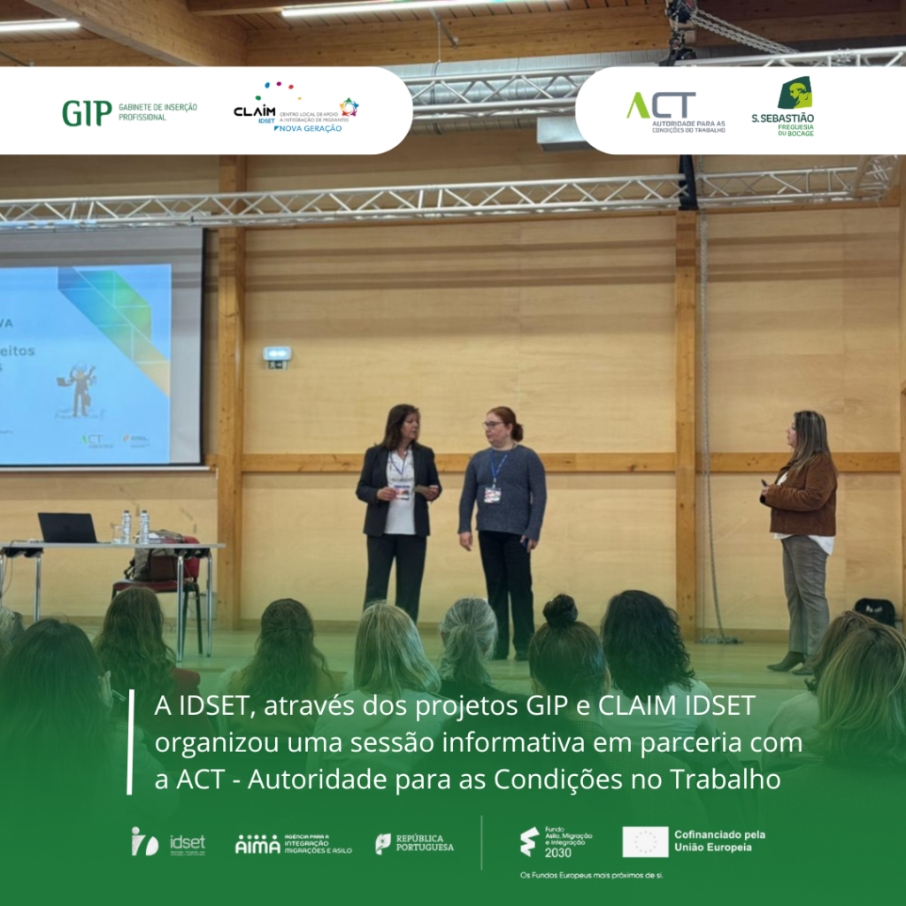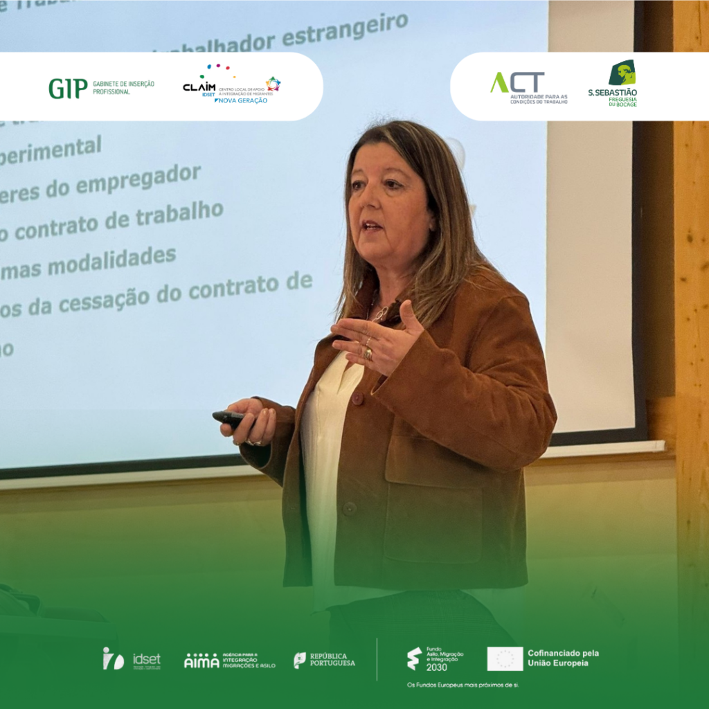 Promovida pelo GIP e pelo CLAIM IDSET, a sessão “Contratos, Direitos e Deveres” foi dinamizada pela Dra. Benedita Pernas, inspetora da Autoridade para as Condições no Trabalho (@actportugal ). Ao longo da manhã, foram partilhados esclarecimentos práticos, exemplos concretos e respostas a dúvidas que surgem tantas vezes no dia a dia laboral.